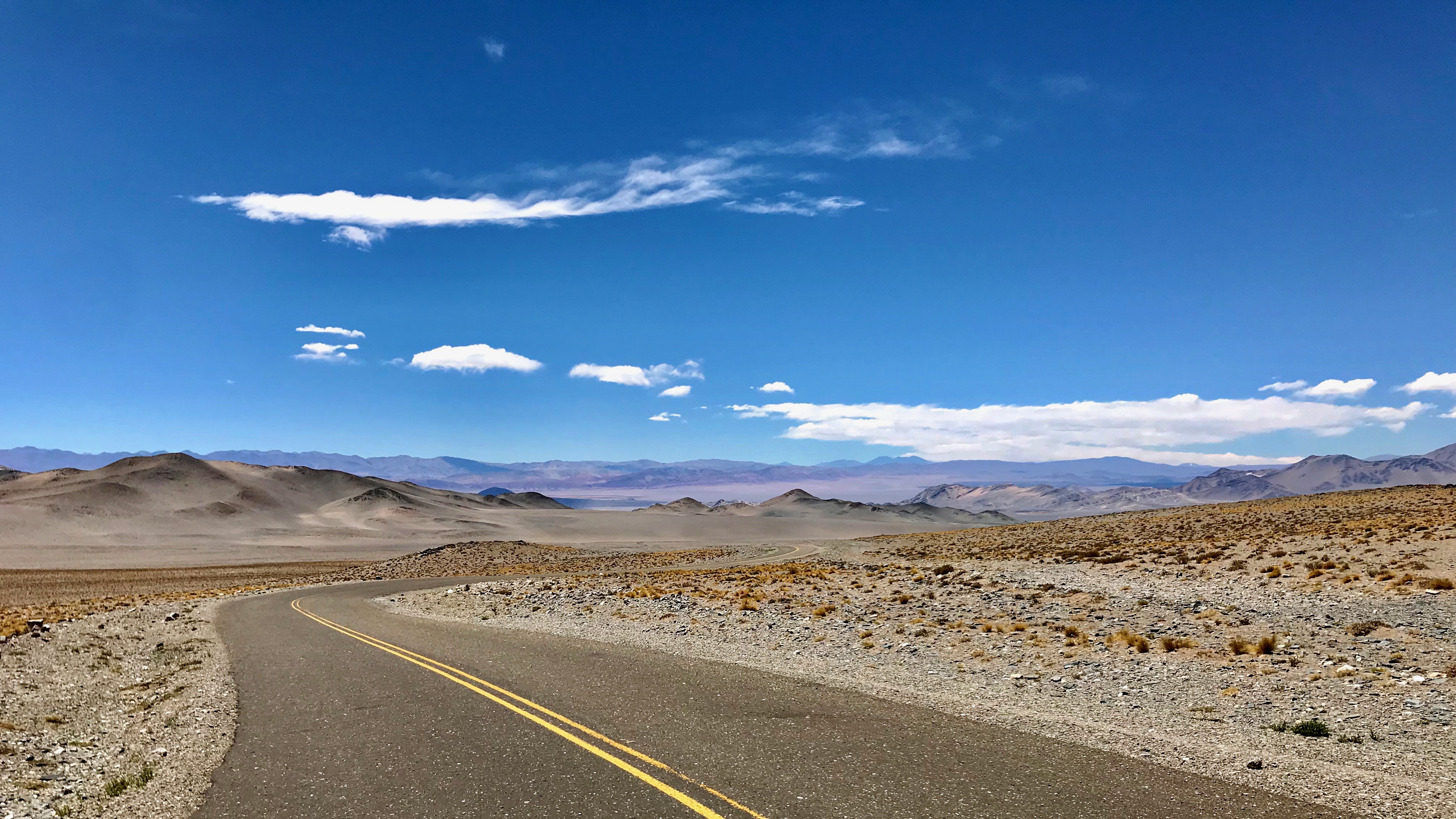 Trotzdem sass der Schock irgendwie tief, dies hätte auch böse enden können, ich beschloss mich nicht mehr alleine auf solche Abenteuer einzulassen und wieder mehr auf öfter benutzten „Strassen“ unterwegs zu sein. Weiter sollte es über Fiambala und den Paso San Francisco nach Chile und Copiapo gehen. Das Fahrtraining vom Vortag zeigte besonders bei der Ebene nach Antofagasta Wirkung, diese nahm ich diesmal mit viel Schwung und so war ich in knapp zweieinhalb Stunden wieder zurück auf der Ruta 40, wer sagte nochmal dass für die Strecke 6 Stunden gebraucht würden;-). Der Rest bis Fiambala war vor allem eines, Brüten in der Hitze bei 35 Grad, diesmal beschlug der Helm von der Innenseite. Fiambala könnte mit einer imposanten Thermalanlage mit Hotel auftrumpfen, mir war aber grad gar nicht so auf Dampfbad.