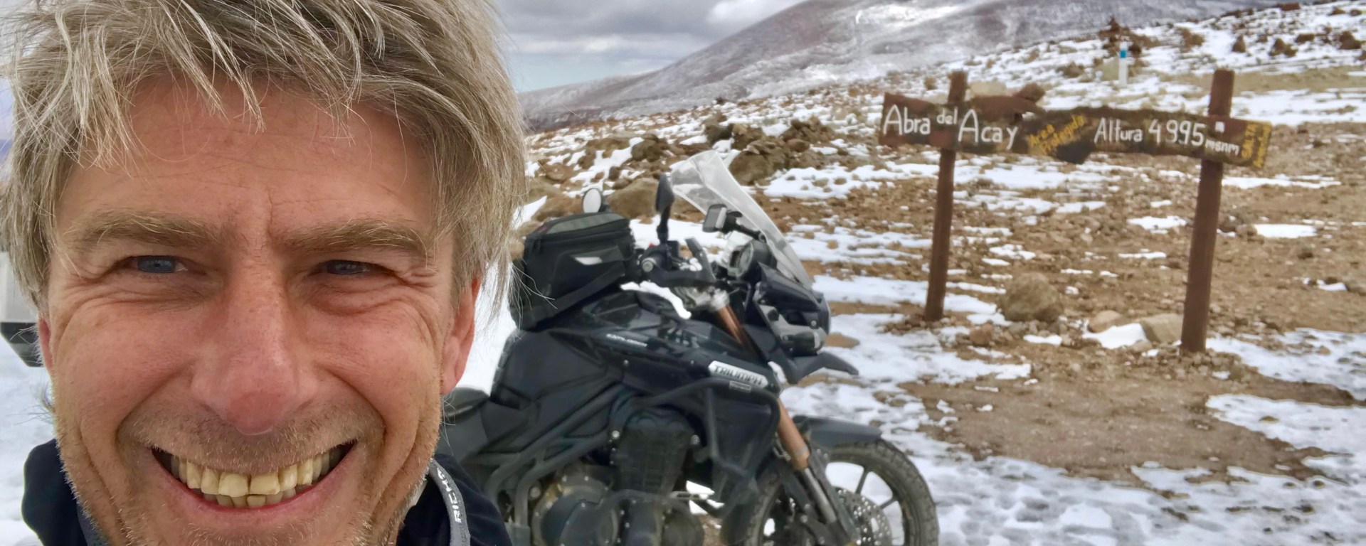 Diese Reise führte mich mehr als 12500 km (davon 2750 km unbefestigt), einen Gesamtanstieg von 140’000 m überwindend auf über 4984 m über Meer, durch 4 Länder mehrfach über die Anden und zurück. Meine Triumph Tiger Explorer schaffte die 100’000 km Marke knapp nicht, dies lag nicht an ihr, sondern viel mehr am abrupten und schmerzhaften Schluss meiner Reise infolge grosser Zahnschmerzen, ansonsten waren da: