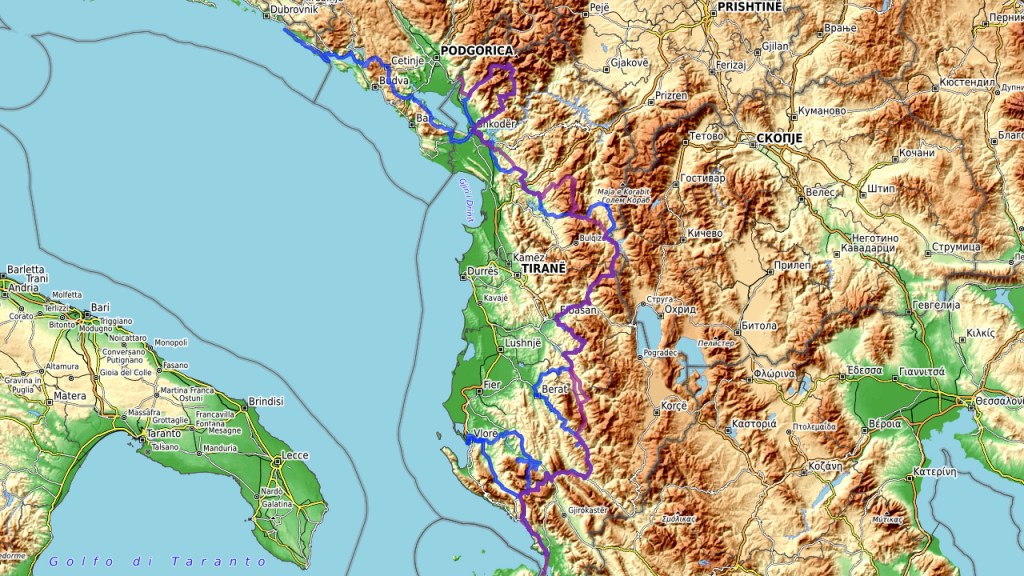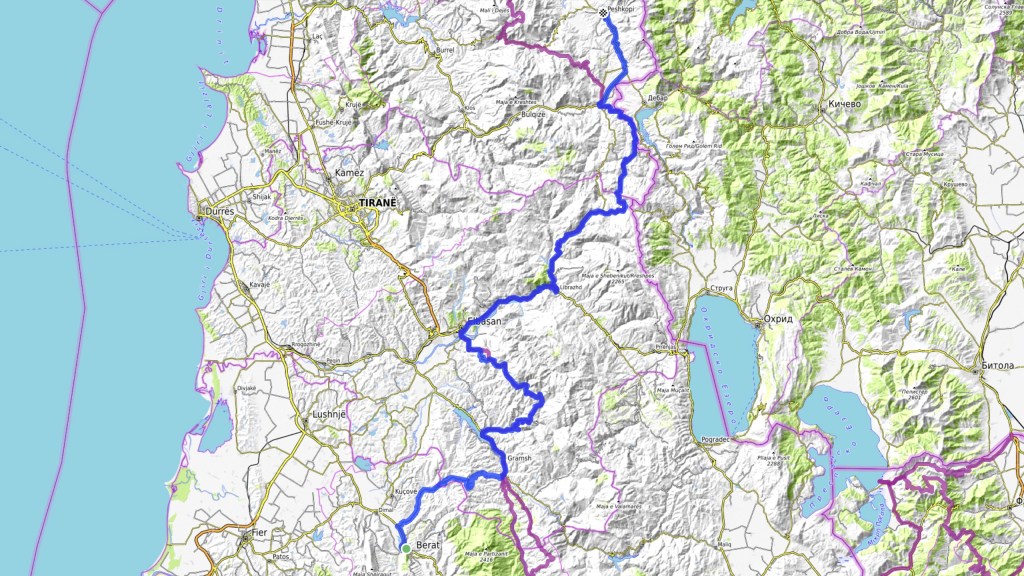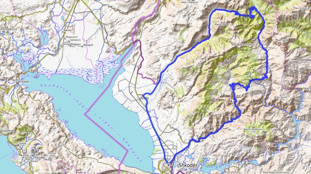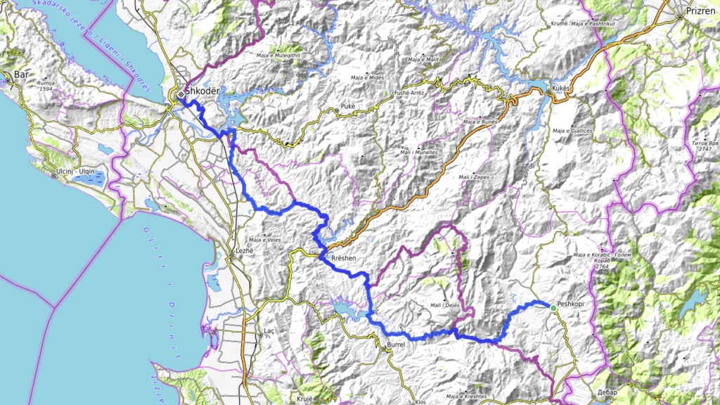 Distanz: 154 km, bis auf die Rückfahrt nach Shkodër entlang des Sees alles TET