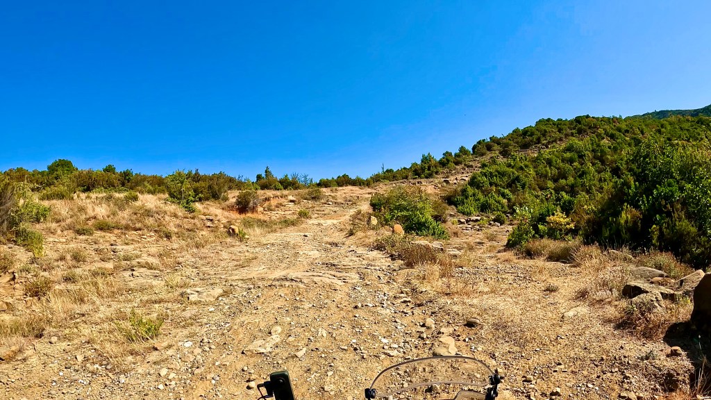 - 32 km von km 17 bis Gramsh km 53 (- 4km, musste ein Stück zurück), nach einfacher Kiesstrasse in der Fläche, sehr sehr harter Aufstieg, viele sehr ausgewaschene Kehren mit grossen Steinen, erster Teil der Abfahrt steil mit teils grossen Steinen. Sehr schwer, SG 4-5