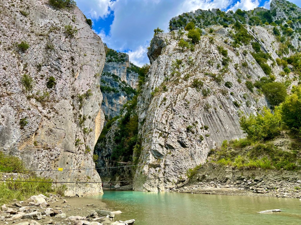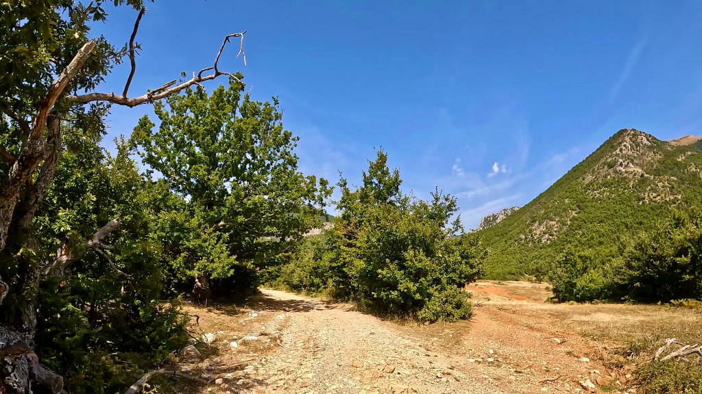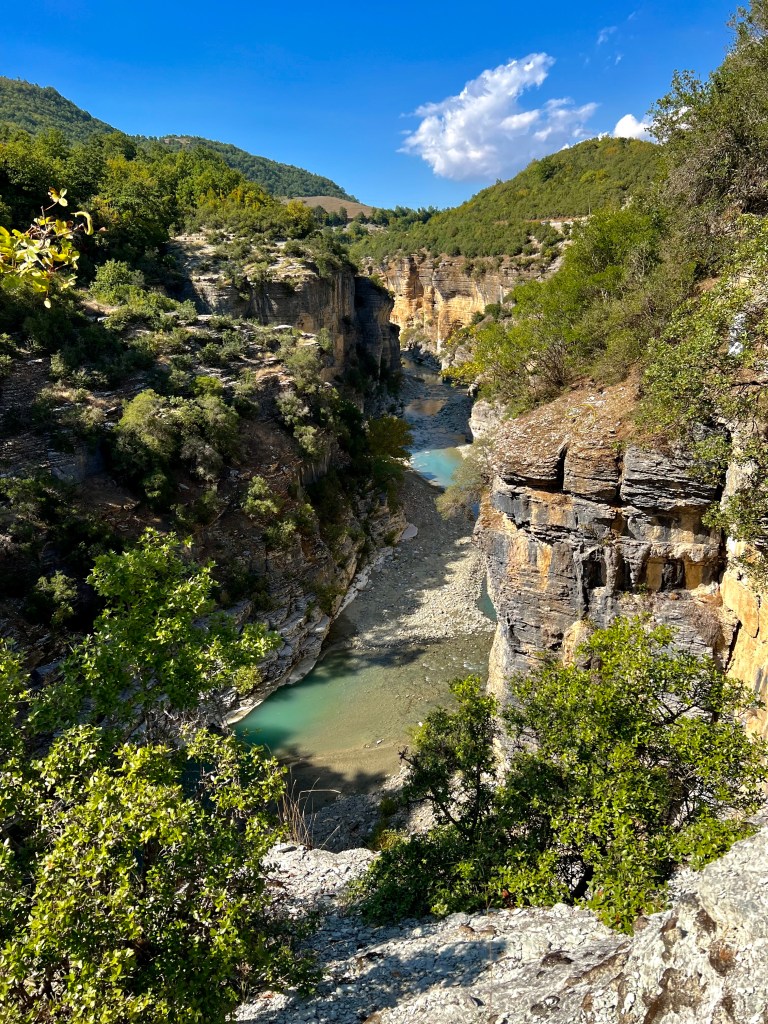 Dieser führte wiedermal zuerst befestigt in ein Tal rein und genau dort wo der Asphalt aufhört, nach 10 km gab es einen Abzweiger zur Holtës-Schlucht die man sich durchaus kurz näher anschauen kann (da gibt es ein Campingplatz mit Pool und Restaurant davor).