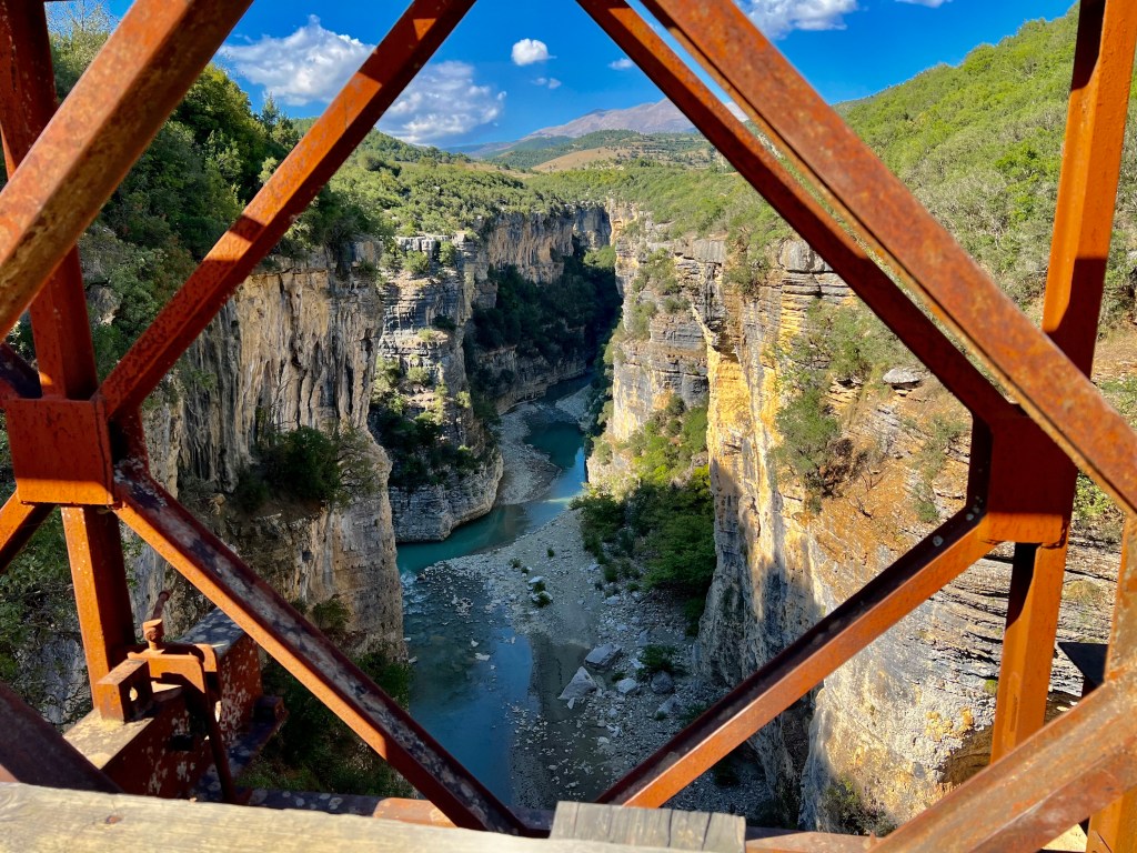 Kaum zurück auf Asphalt gibt es einen sehr attraktiven Aussichtspunkt um den Osumit Canyon zu bestaunen, diesen überquerte ich kurze Zeit später auf einer kleinen Brücke weiter dem TET folgend bis sich dieser in einem Single Trail auflöste. Ich fuhr das Strässchen jedoch weiter in der Hoffnung den Single Trail umfahren zu können was mir leider oder zum Glück nicht gelang, Anschauungsunterricht geben hier Alex und Biggi von FAT die zur selben Zeit dort unterwegs waren. So genoss ich halt die 60 km auf der kurvenreiche Strasse das ganze Tal hinunter bis Berat.