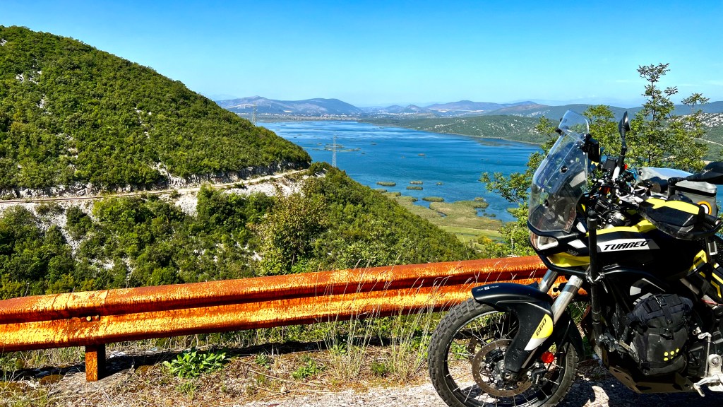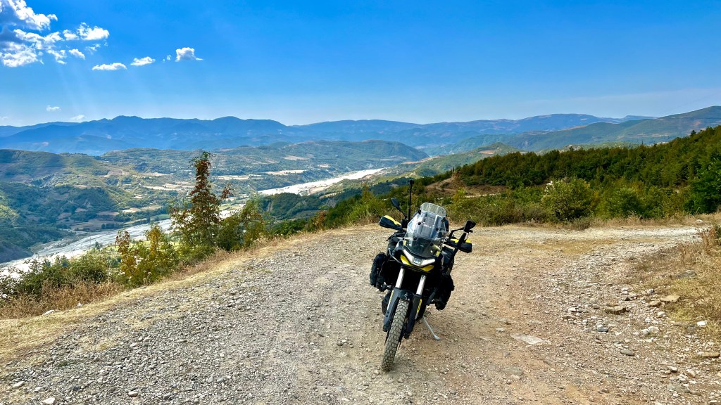 Bei Ungraj hatte ich dann mal genug von Offroad, es war mir einfach zu heiss und so verliess ich den TET und fuhr auf einer neu asphaltierten kleinen Strasse hoch über einen Pass der oben auf beide Seiten wunderschöne Ausblicke bot, einerseits weit in die Berge hinein und auf der anderen Seite die vielen Kehren hinunter in die Ebene von Shkodër.