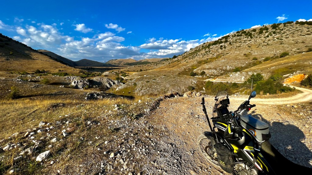 Der Aufstieg ist eigentlich trotz viel groben Schotter gut fahrbar, die schiere Länge machts, dass man immer mal wieder tief durchschnaufen und die reine Bergluft einatmen darf. Das Gute oder auch Schlechte an dieser Route ist, sie ist recht stark befahren, ich staunte aber als ich einem Polen auf seiner Honda X-ADV begegnet bin und etwa 1h später noch viel mehr als ich ein unglaublich grobschottriges Stück befuhr, ja auch der Valle hatte hier seine Probleme aber mit einer X-ADV?