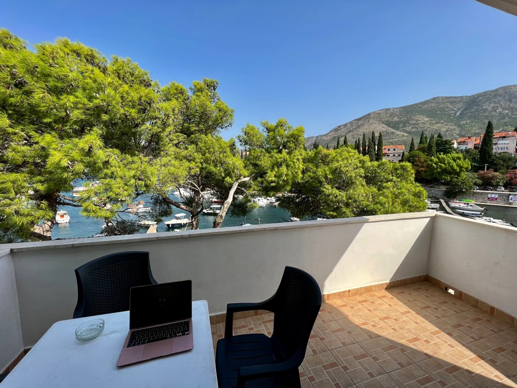 Auch in Cavtat war ich schon mal, ist trotz des nahen Flugplatzes ein schöner, kleiner Ort in Sichtweite von Dubrovnik aber sehr viel entspannter und günstiger, PSSST, nicht weitersagen! Ich genoss dort mal 4 Tage ohne Motorradfahren, dafür bot sich die wunderbare Terrasse direkt an der Strandpromenade perfekt als Social Media Arbeitsplatz an.