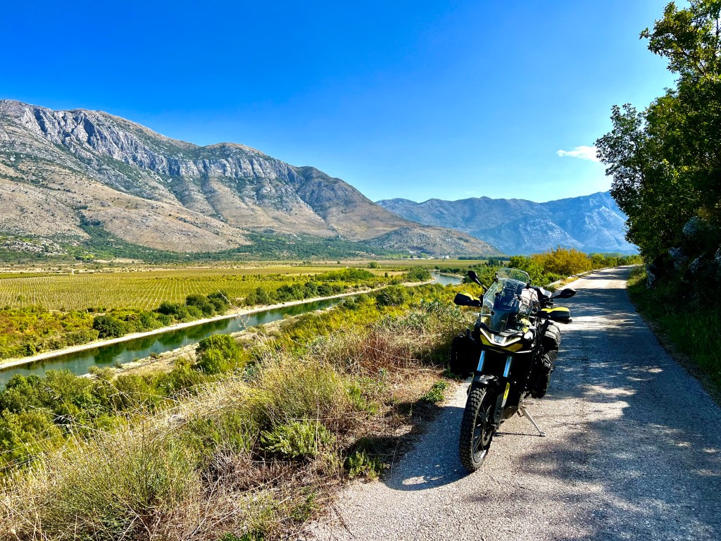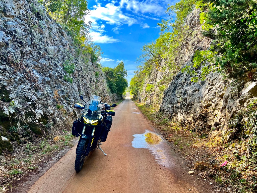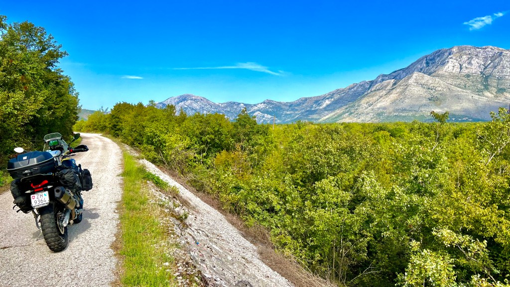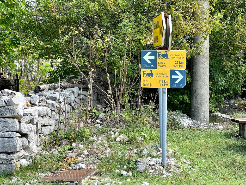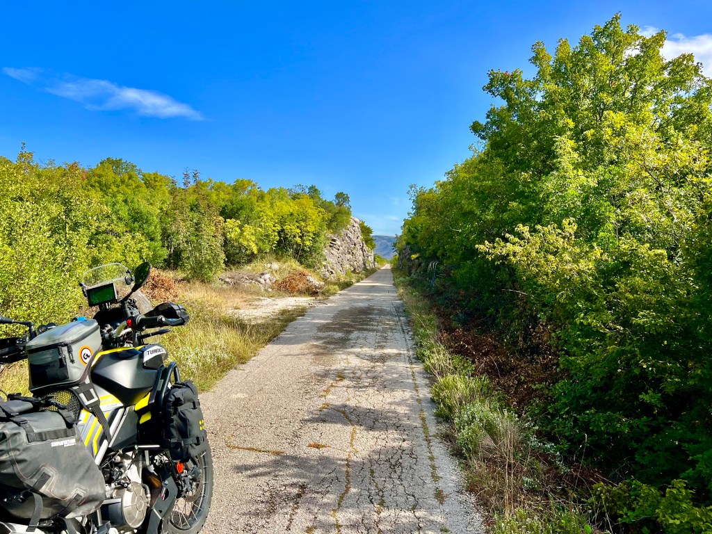 Noch bevor ich Dubrovnik erreichte zweigte eine Strasse rechts nach Trebinje in Bosnien ab und nur ein paar Meter nach dem Grenzübergang biegt ein kleines Strässchen links ab. Schon nach wenigen Metern kam mir die Linienführung etwas seltsam vor, lange Geraden durch Hügel und gleichmässige Kurvenradien, genau, ein Wegweiser bestätigte es, da handelte es sich um eine Alte Bahntrassee die zum Radweg ausgebaut wurde. Wie so viele Jungs in meinem Alter wollte ich als Kind Lokführer werden, ihr könnt euch das Grinsen im Helm vorstellen als ich dann über 60 km am Stück auf dieser alten Bahntrassee fuhr, endlich mal Lokführer sein😊 Nebenbei waren da 3 Autos und 4 Paare auf Fahrrädern unterwegs….