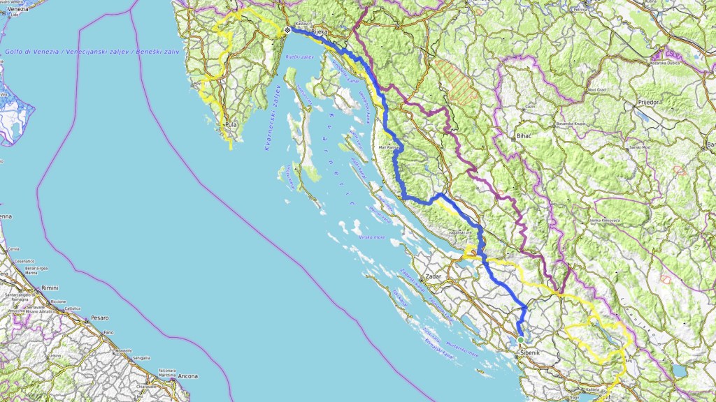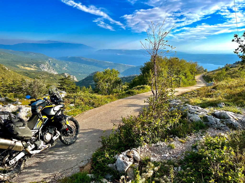 Heute nochmal über 60 km Offroad über den Mali Alan durch Winnetous Land und dann natürlich auf vielen kleinen Strassen über den Velebit, viel Wald aber mit traumhaften Ausblicken sobald sich eine Lücke auftut. Seit 2014 befahre ich Schotterstrassen in Kroatien und so mutet es ein bisschen seltsam an, dass nun ein grosser Teil dieser Etappe zum ACT geworden ist, zumal ich mir diesen für 2024 vorgenommen hatte, jänu dänn!