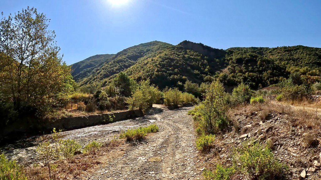 In Muhurr kurz verfahren, ja das geht auch in so einem kleinen Ort aber dann ging es nach kurzer Steigung gemütlich hinein in einen Canyon, wunderbar so ein unbefestigtes Strässchen entlang der Bergflanken bis Selishtë wo ich wieder auf den TET traf.